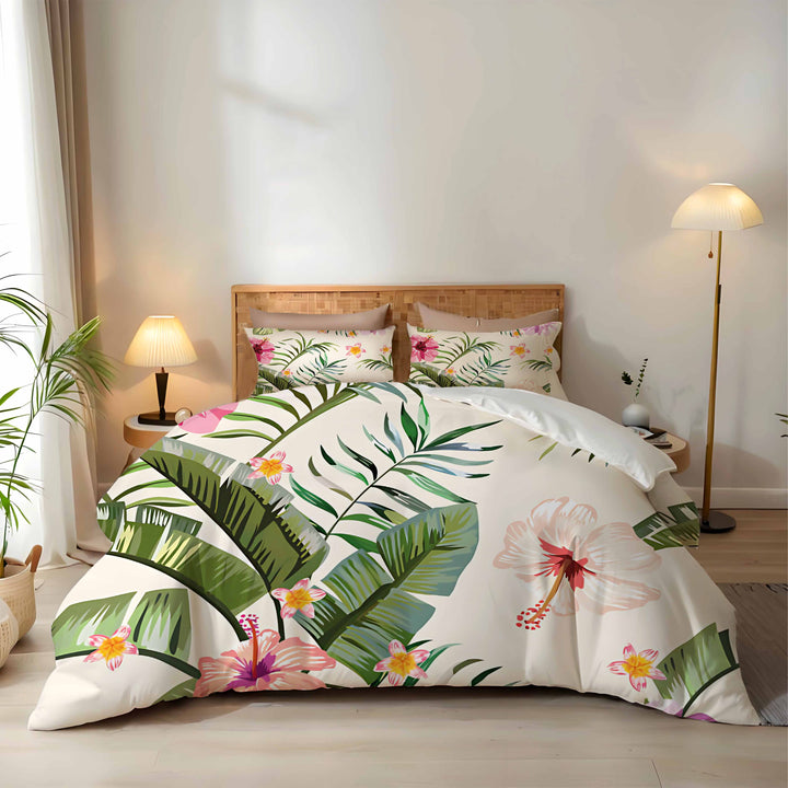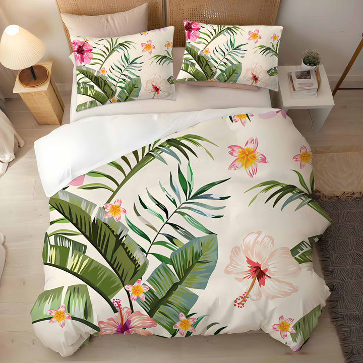 Tropical Rainforest Style Flowers & Leaves 3-Pieces Bedding Duvet Cover Sets Pillowcase